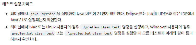 과제 전 체크 리스트를 보면, 테스트 실행 가이드가 있었다.